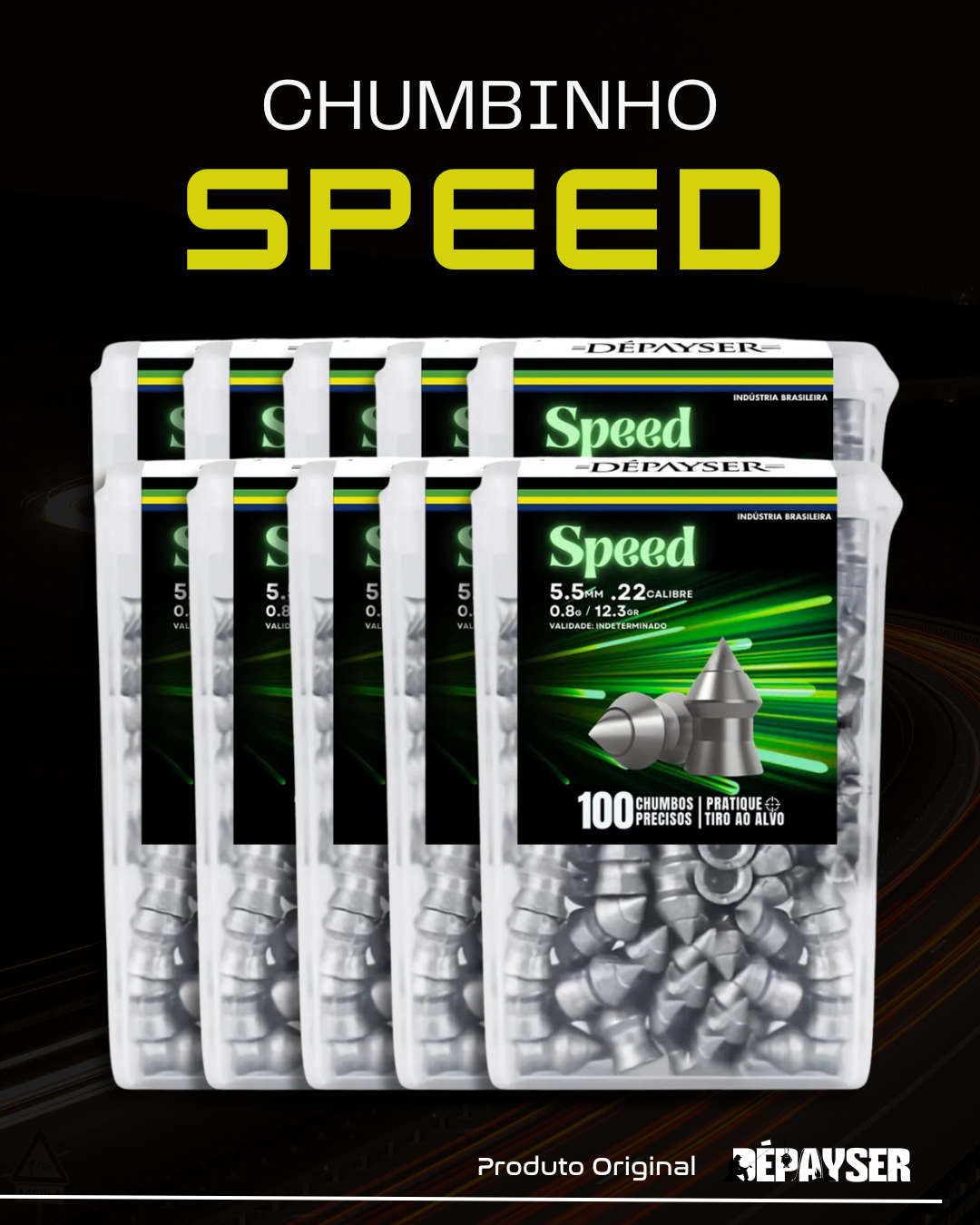 Kit C/10 Chumbinho Dépayser 5,5mm Speed Pontiagudo Perfurante Flash