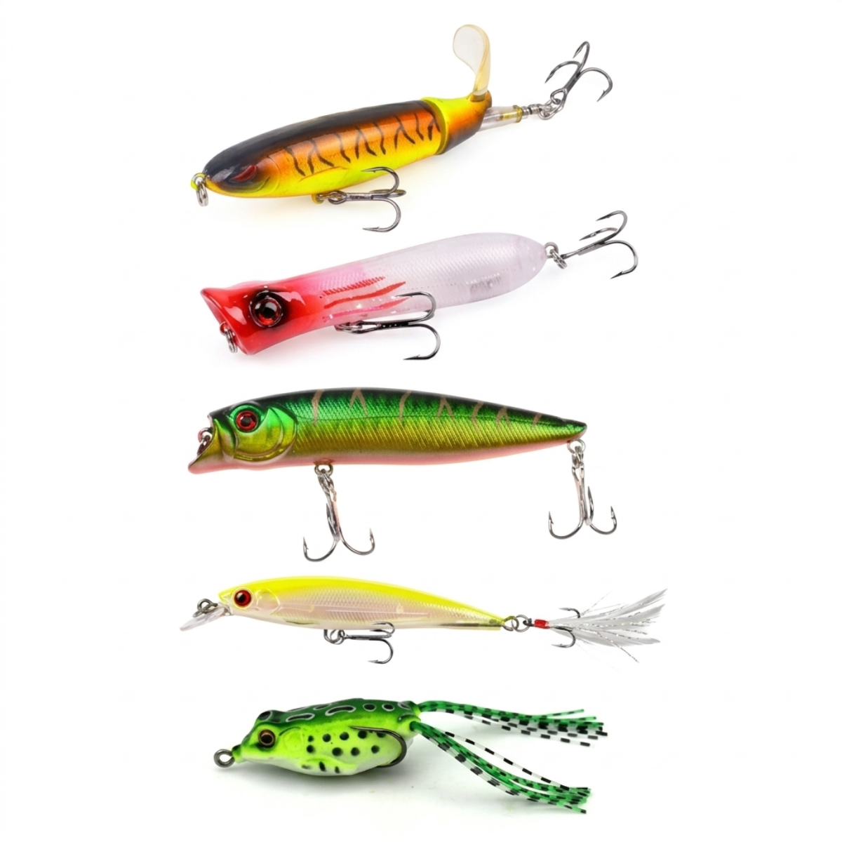• 5 Iscas Artificiais Melhores Brava Rap Popper Whopper Frog