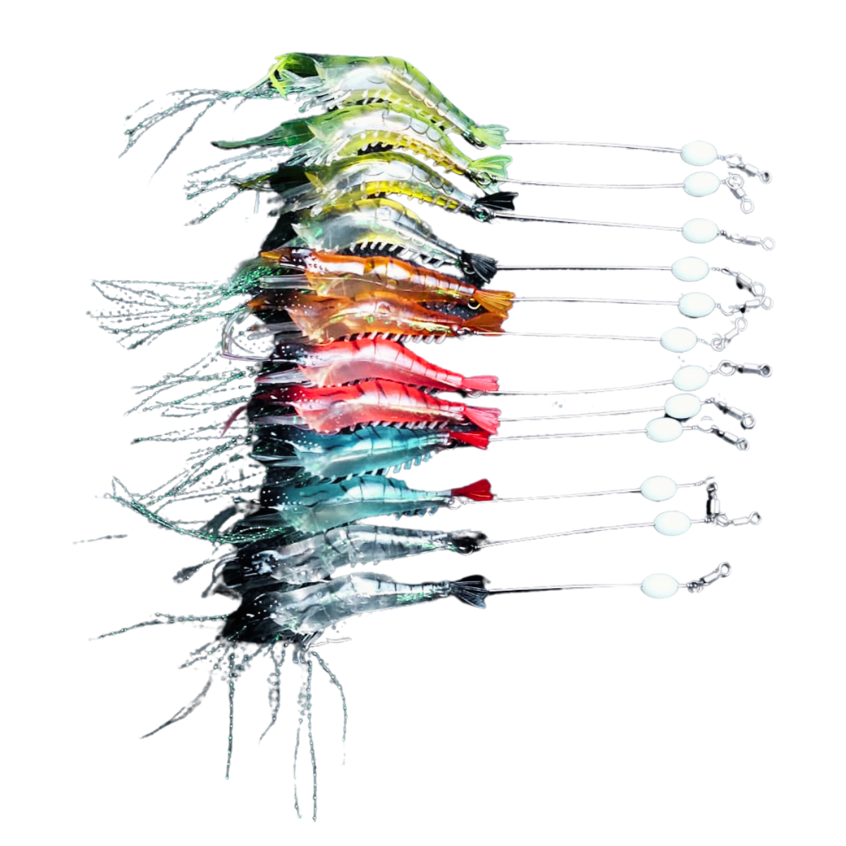 Imita o movimento do camarão real quando manuseada de maneira adequada e possui cores vibrantes para maior atração dos peixes predadores.