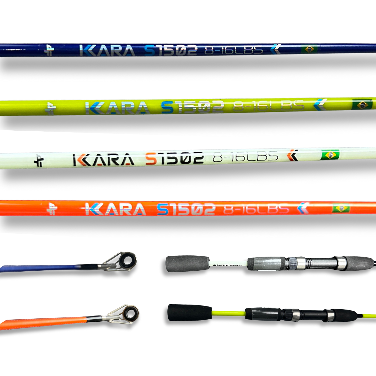 Feita em 2 partes, muito boa para transportar. O melhor de tudo é o custo x benefício. Pode muito bem acompanhar o pescador em vários tipos de pescarias. A vara Kara apesar de ser de fibra de vidro maciça, não é uma vara muito pesada, então serve para diversas modalidades de pescaria, inclusive com iscas artificias, ou pesca com massas, iscas naturais e vivas. Podendo então capturar diversos peixes, como tucunarés, traíras, robalos, dourados, tilapias, piaus, entre diversos outros.