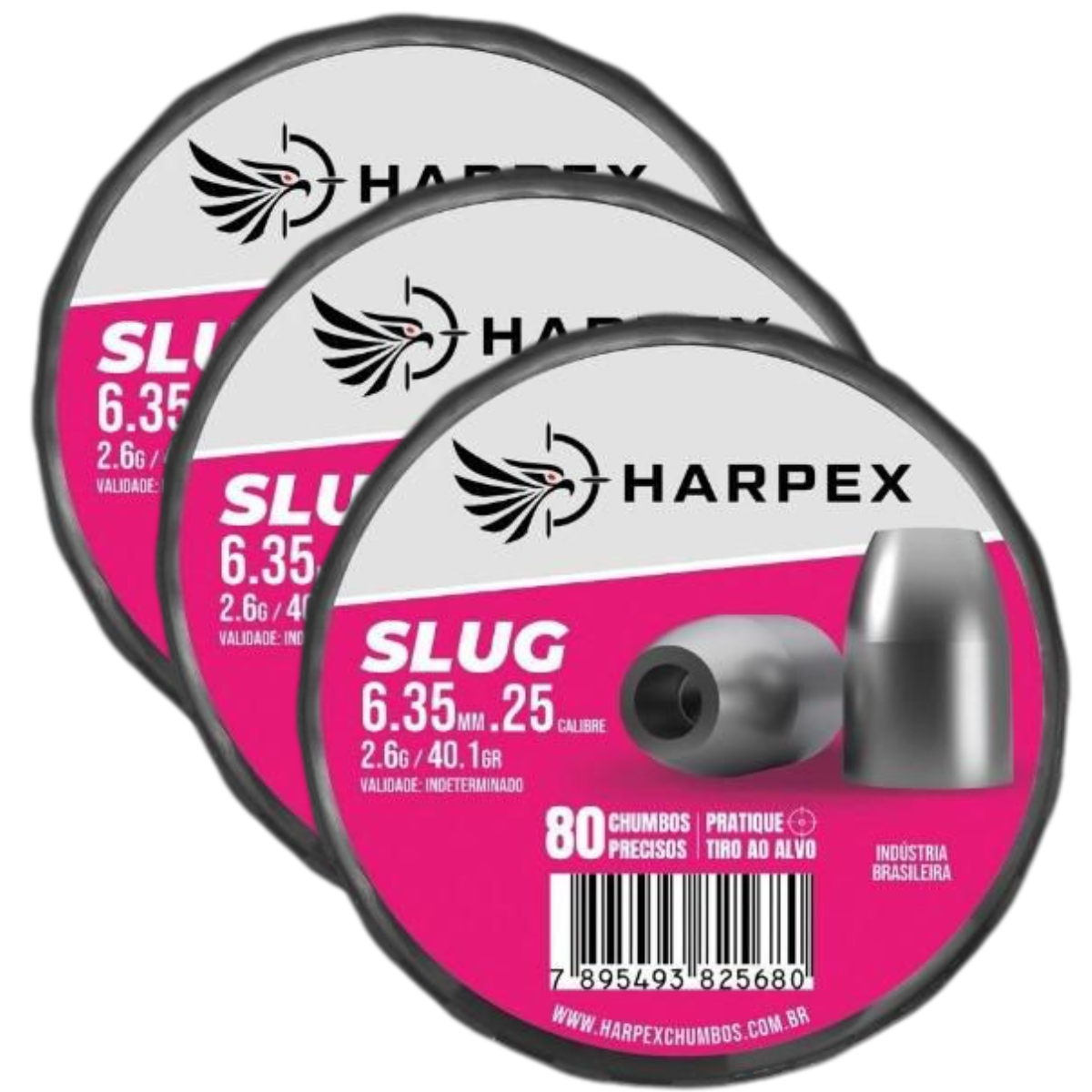 Kit 3 Chumbinho 6.35mm Harpex Slug Chumbo P/ Carabina 80 Un